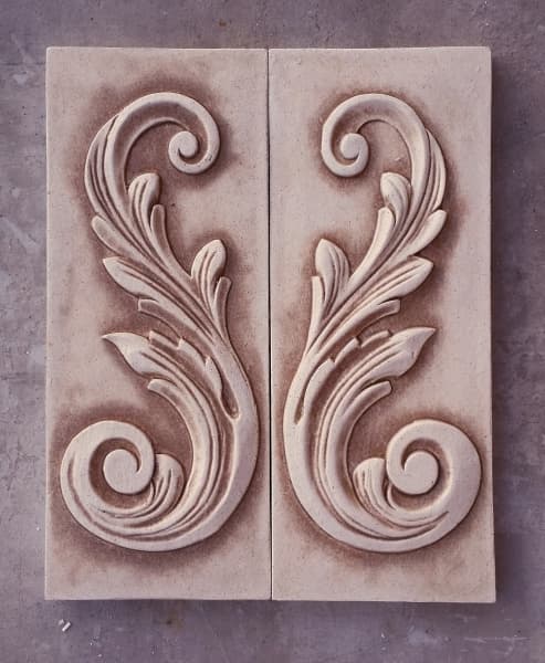 Acanthus liner is 3 3/8" and the relief is 1/2" high. A full piece is 9 3/8" long. The liner pieces and corners can be used around a mirror, or as a chair rail, but they are usually used around one of our large relief tiles.