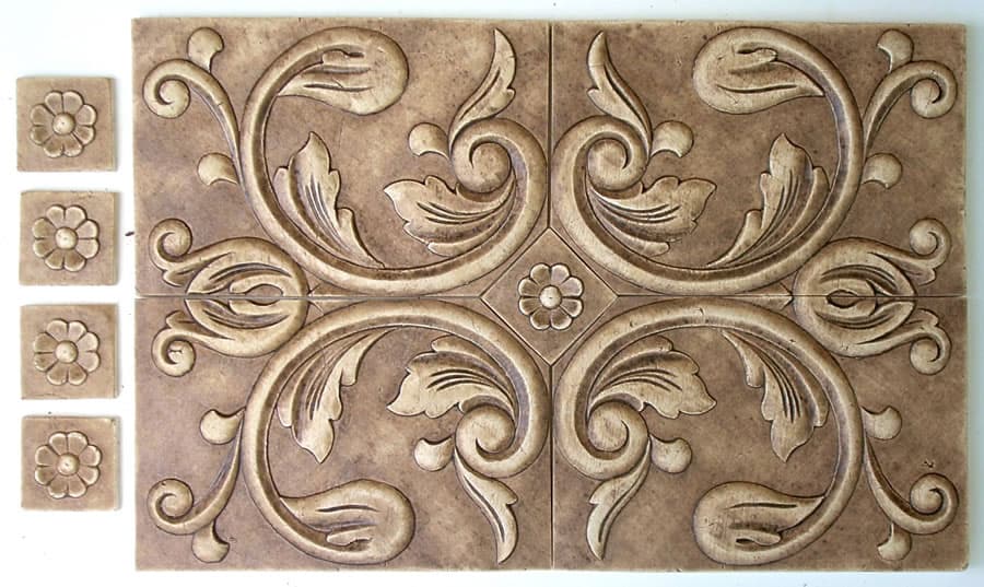Bordeaux tile measures 11 1/2 x 17" Typically cut in 5 pieces with the center 2x2 floret as a separate piece. Additional 2x2 Florets are availabe which can be used as accent pieces elseware in thebacksplash.