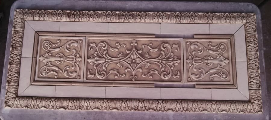 The Paris One tile (18 x 81/2") is comprised of three pieces. You will also see some pictures of the 8 1/2 x 8 1/2" Paris Two tile which can be used with the Paris One in various ways to fill a larger space.
