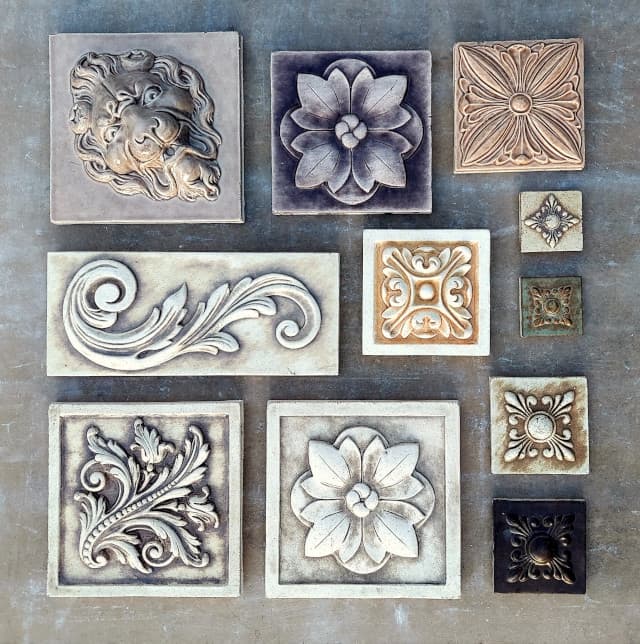 Lion Plaque and 2 Bouquet tiles (total 21 x 29.5") with customer supplied liners and flat tiles.