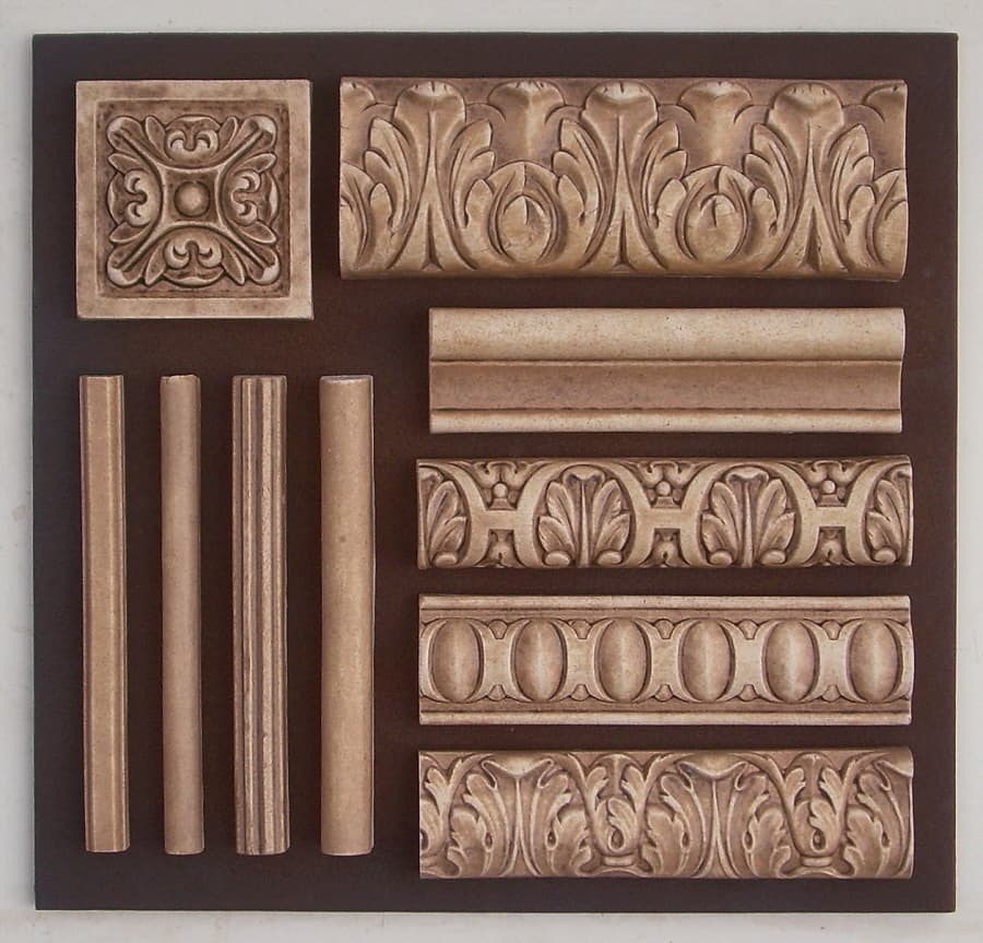 The Small Acanthus Liner and Corner are 2 1/4" wide. A full piece is 10" long. They are typically used as a decorative frame around one or our medium or large relief tiles. This liner was designed specifically for a home in Abu-Dhabi, UAE: Villa Jenelle won the award for Best Architecture Single Residence, competing against homes across Arabia and Africa.